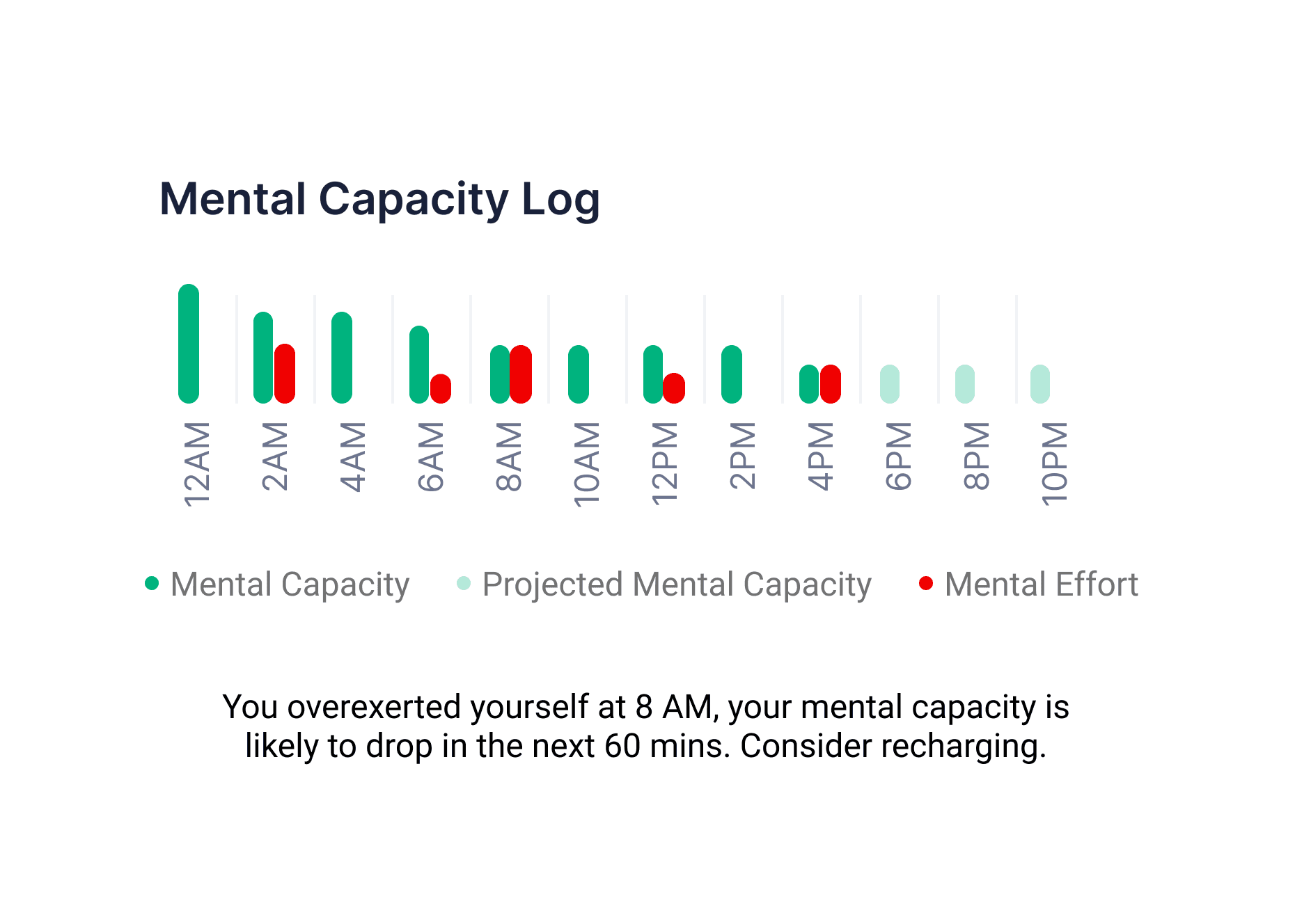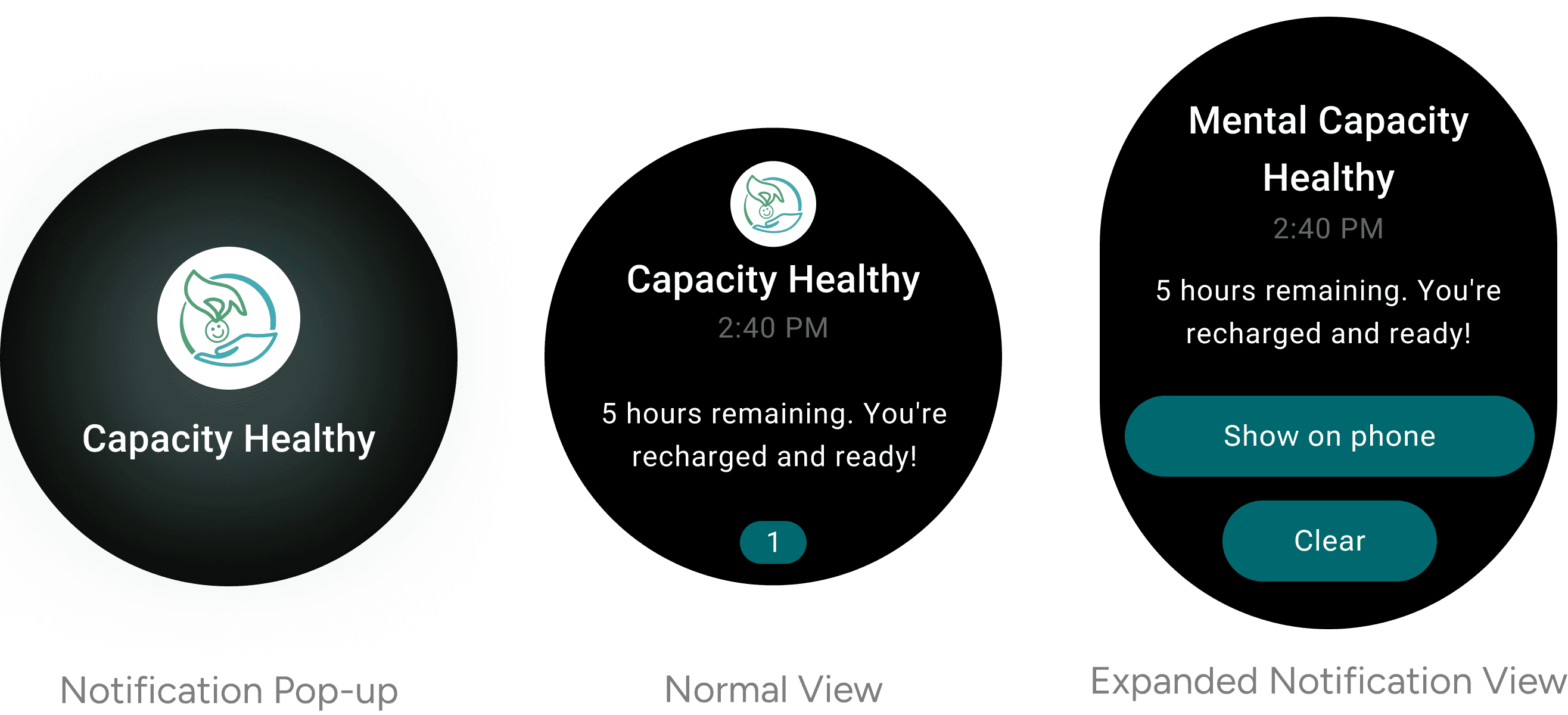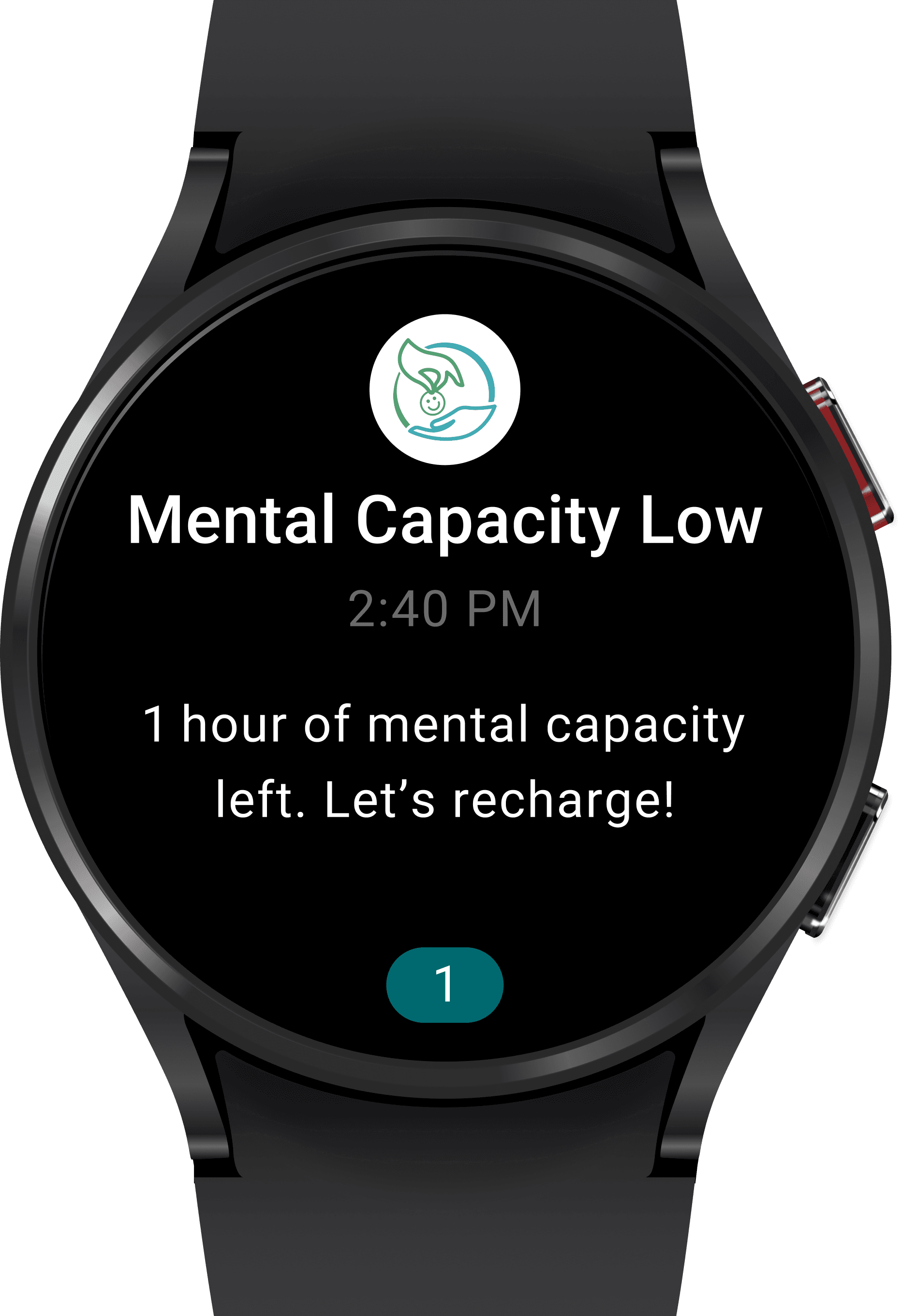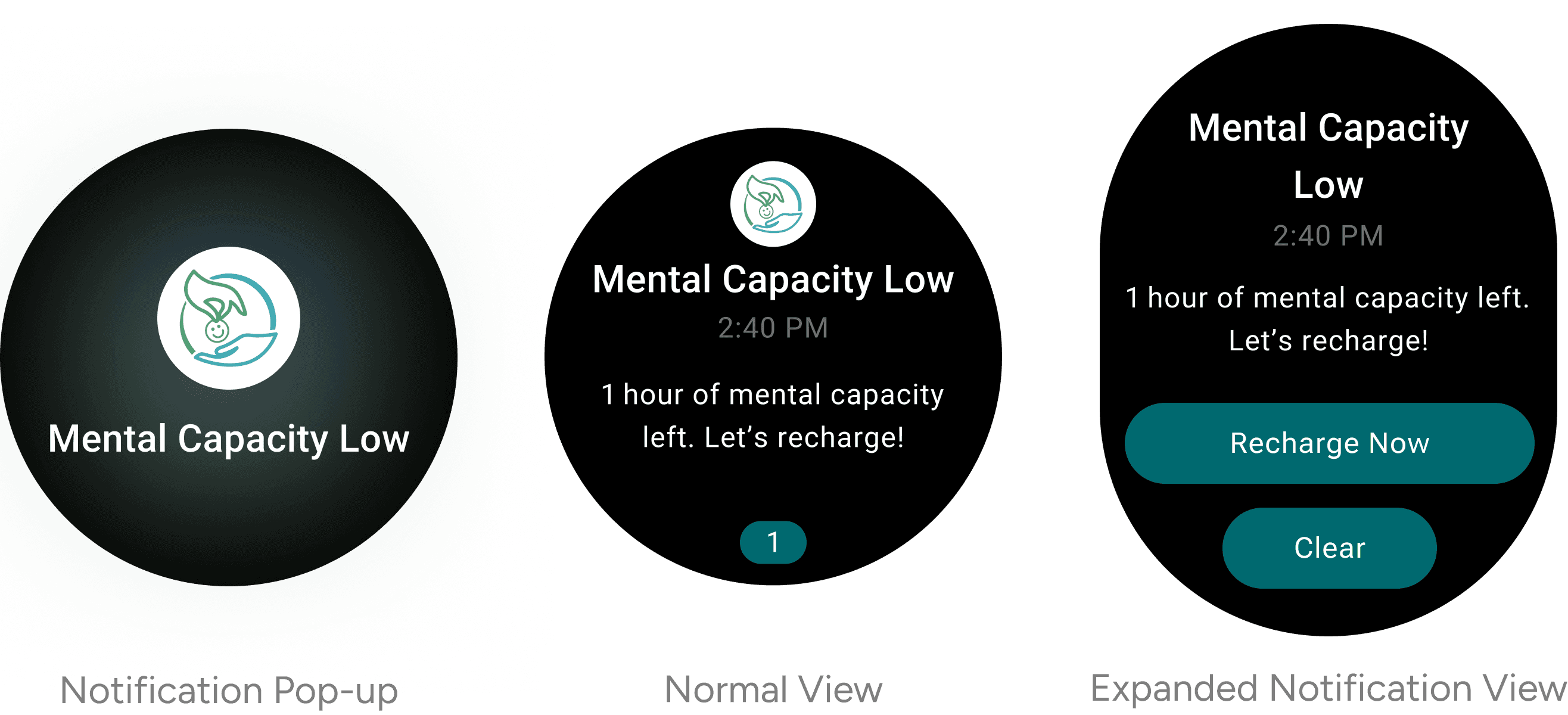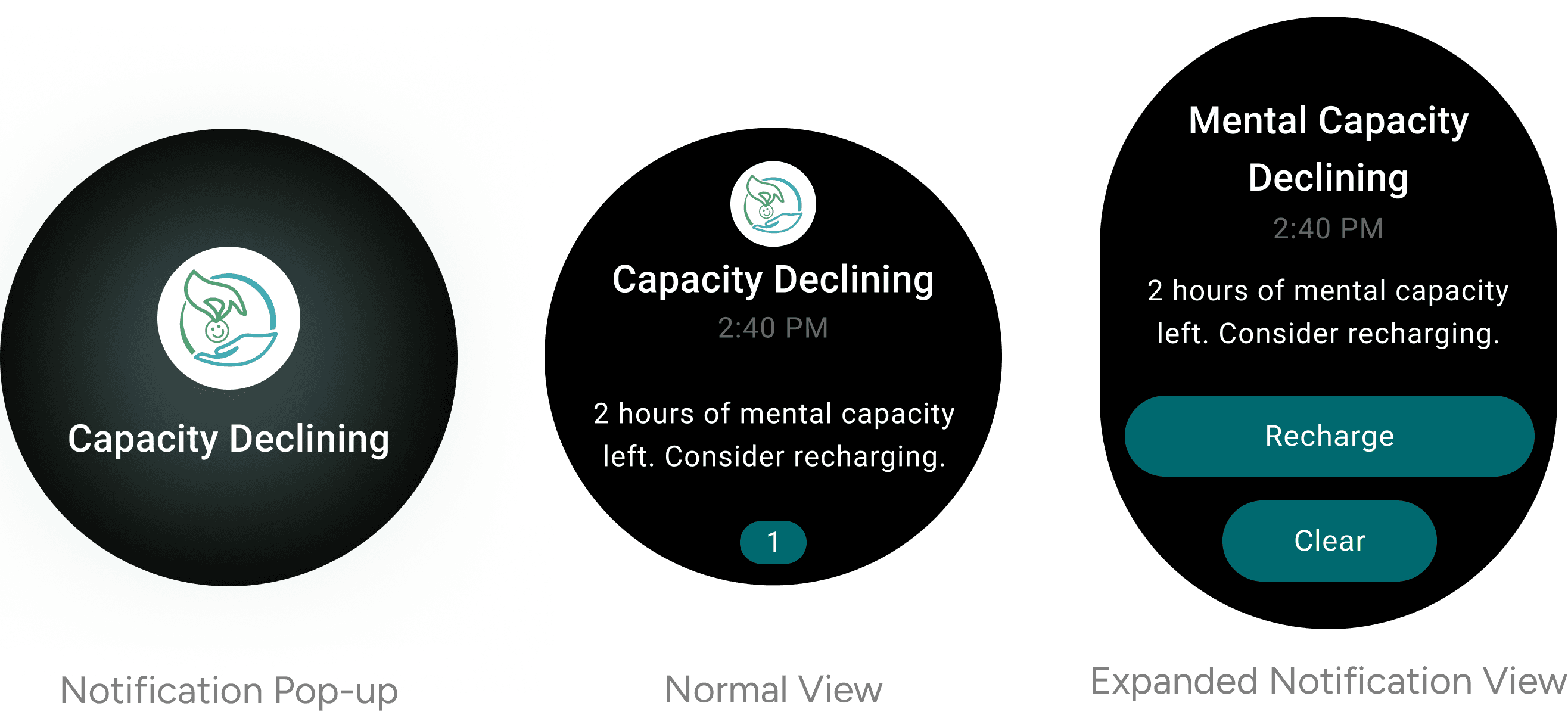 I selected the fourth iteration because it balances clarity with urgency. While it doesn't explain why capacity is low, users nearing burnout can't process complex information. By showing only time remaining and a clear action, we reduce cognitive load when users need it most.