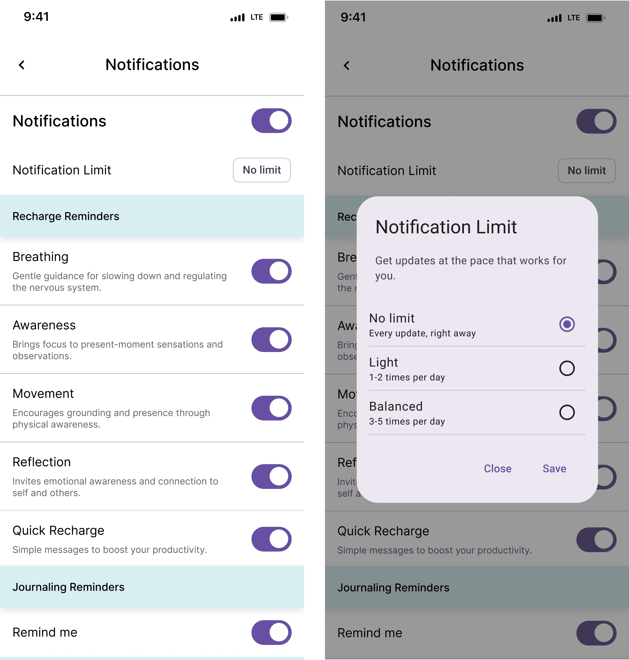 Using the Material 3 Design Kit, I designed an interface for notification customization, with triggers handled in the backend.